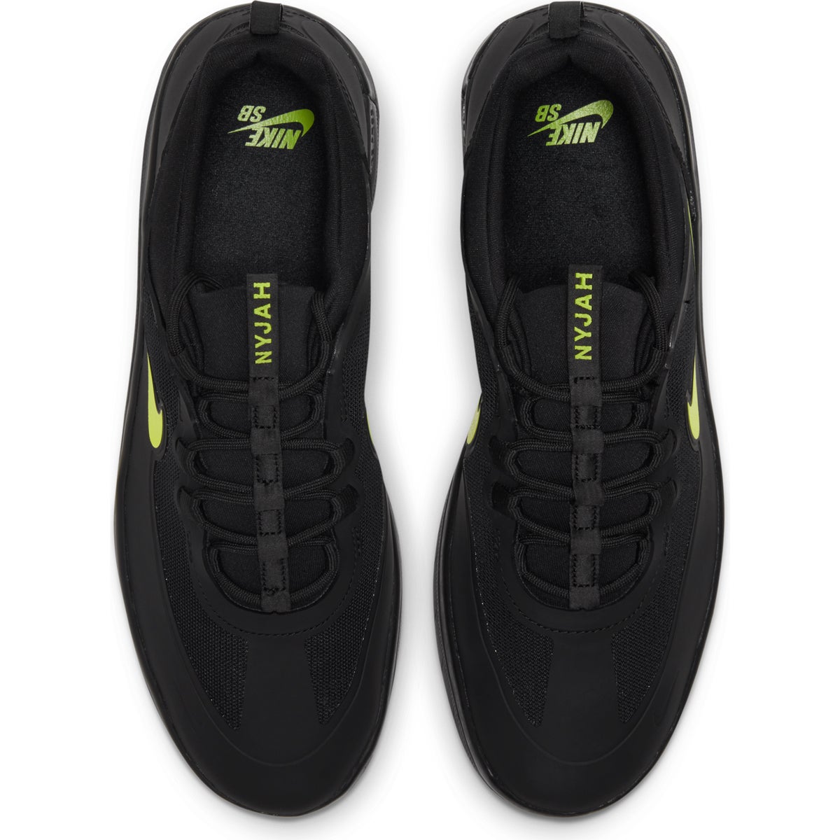 Nike Sb Nyjah Free 2 Black Cyber / Black shades run throughout the construction, coloring the mesh unders as well as the synthetic panels that support the kit over top.